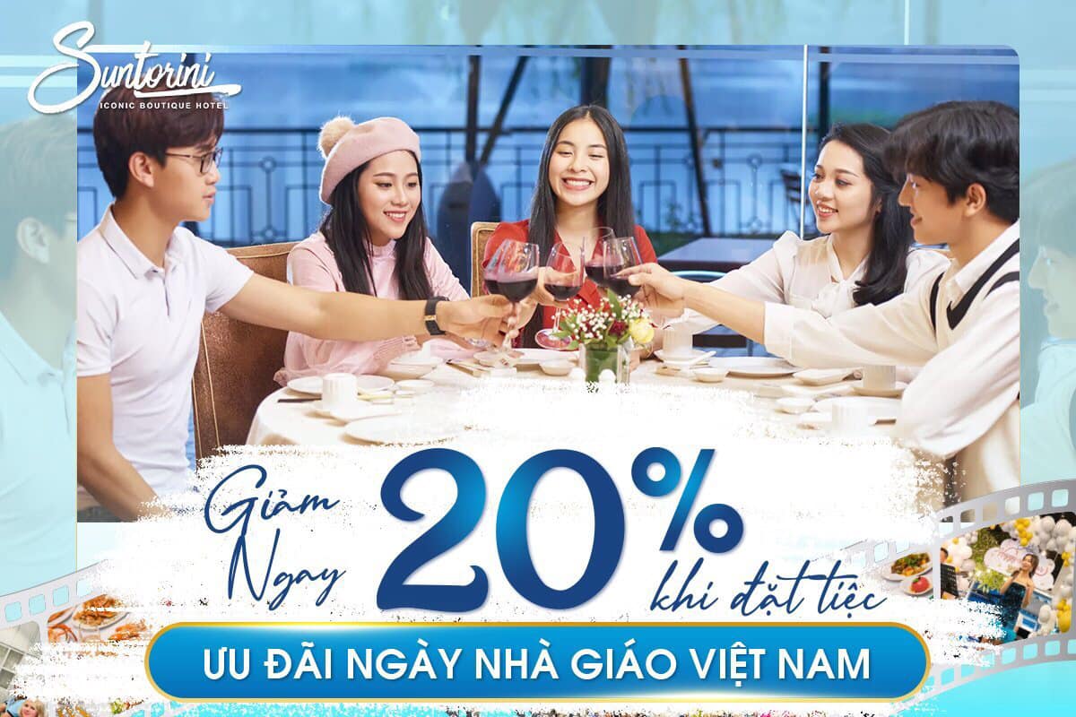 {"id":611760,"name":"MỪNG NGÀY NHÀ GIÁO VIỆT NAM 20.11","desc":"","content":"<p style=\"margin-bottom:.0001pt; margin:0in 0in 8pt\"><img height=\"16\" src=\"\/datafiles\/36761\/upload\/images\/image-20231106143546-23.png\" width=\"16\" \/><span style=\"font-size:11pt\"><span style=\"background:white\"><span style=\"line-height:150%\"><span style=\"font-family:Calibri,sans-serif\"><span style=\"font-size:11.5pt\"><span style=\"line-height:150%\"><span style=\"font-family:"inherit",serif\"><span style=\"color:#050505\">MỪNG NGÀY NHÀ GIÁO VIỆT NAM 20.11<\/span><\/span><\/span><\/span><\/span><\/span><\/span><\/span><\/p>\n\n<p style=\"margin-bottom:.0001pt; margin:0in 0in 8pt\"><span style=\"font-size:11pt\"><span style=\"background:white\"><span style=\"line-height:150%\"><span style=\"font-family:Calibri,sans-serif\"><span style=\"font-size:11.5pt\"><span style=\"line-height:150%\"><span style=\"font-family:"inherit",serif\"><span style=\"color:#050505\">ƯU ĐÃI HẾT CỠ TIỆC VUI TƯNG BỪNG <\/span><\/span><\/span><\/span><\/span><\/span><\/span><\/span><img height=\"16\" src=\"\/datafiles\/36761\/upload\/images\/image-20231106143546-24.png\" width=\"16\" \/><\/p>\n\n<p style=\"margin-bottom:.0001pt; margin:0in 0in 8pt\"><img height=\"16\" src=\"\/datafiles\/36761\/upload\/images\/image-20231106143546-25.png\" width=\"16\" \/><span style=\"font-size:11pt\"><span style=\"background:white\"><span style=\"line-height:150%\"><span style=\"font-family:Calibri,sans-serif\"><span style=\"font-size:11.5pt\"><span style=\"line-height:150%\"><span style=\"font-family:"inherit",serif\"><span style=\"color:#050505\">Chào đón ngày Nhà Giáo Việt Nam 20\/11, Suntorini mang đến ƯU ĐÃI HẤP DẪN thay lời tri ân gửi trao tới Nhà giáo:<\/span><\/span><\/span><\/span><\/span><\/span><\/span><\/span><\/p>\n\n<p style=\"margin-bottom:.0001pt; margin:0in 0in 8pt\"><img height=\"16\" src=\"\/datafiles\/36761\/upload\/images\/image-20231106143546-26.png\" width=\"16\" \/><span style=\"font-size:11pt\"><span style=\"background:white\"><span style=\"line-height:150%\"><span style=\"font-family:Calibri,sans-serif\"><span style=\"font-size:11.5pt\"><span style=\"line-height:150%\"><span style=\"font-family:"inherit",serif\"><span style=\"color:#050505\">Ưu đãi đặt tiệc cho các đơn vị trường học liên hệ đặt tiệc.<\/span><\/span><\/span><\/span><\/span><\/span><\/span><\/span><\/p>\n\n<p style=\"margin-bottom:.0001pt; margin:0in 0in 8pt\"><img height=\"16\" src=\"\/datafiles\/36761\/upload\/images\/image-20231106143546-27.png\" width=\"16\" \/><span style=\"font-size:11pt\"><span style=\"background:white\"><span style=\"line-height:150%\"><span style=\"font-family:Calibri,sans-serif\"><span style=\"font-size:11.5pt\"><span style=\"line-height:150%\"><span style=\"font-family:"inherit",serif\"><span style=\"color:#050505\">GIẢM NGAY 20% khi đặt tiệc trước (Chương trình không áp dụng cho hải sản, bia, rượu).<\/span><\/span><\/span><\/span><\/span><\/span><\/span><\/span><\/p>\n\n<p style=\"margin-bottom:.0001pt; margin:0in 0in 8pt\"><img height=\"16\" src=\"\/datafiles\/36761\/upload\/images\/image-20231106143546-28.png\" width=\"16\" \/><span style=\"font-size:11pt\"><span style=\"background:white\"><span style=\"line-height:150%\"><span style=\"font-family:Calibri,sans-serif\"><span style=\"font-size:11.5pt\"><span style=\"line-height:150%\"><span style=\"font-family:"inherit",serif\"><span style=\"color:#050505\">Thực đơn phong phú giá chỉ từ 300.000VNĐ\/suất.<\/span><\/span><\/span><\/span><\/span><\/span><\/span><\/span><\/p>\n\n<p style=\"margin-bottom:.0001pt; margin:0in 0in 8pt\"><img height=\"16\" src=\"\/datafiles\/36761\/upload\/images\/image-20231106143546-29.png\" width=\"16\" \/><span style=\"font-size:11pt\"><span style=\"background:white\"><span style=\"line-height:150%\"><span style=\"font-family:Calibri,sans-serif\"><span style=\"font-size:11.5pt\"><span style=\"line-height:150%\"><span style=\"font-family:"inherit",serif\"><span style=\"color:#050505\">TẶNG KÈM:<\/span><\/span><\/span><\/span><\/span><\/span><\/span><\/span><\/p>\n\n<p style=\"margin-bottom:.0001pt; margin:0in 0in 8pt\"><span style=\"font-size:11pt\"><span style=\"background:white\"><span style=\"line-height:150%\"><span style=\"font-family:Calibri,sans-serif\"><span style=\"font-size:11.5pt\"><span style=\"line-height:150%\"><span style=\"font-family:"inherit",serif\"><span style=\"color:#050505\">- Backdrop và gói trang trí cơ bản.<\/span><\/span><\/span><\/span><\/span><\/span><\/span><\/span><\/p>\n\n<p style=\"margin-bottom:.0001pt; margin:0in 0in 8pt\"><span style=\"font-size:11pt\"><span style=\"background:white\"><span style=\"line-height:150%\"><span style=\"font-family:Calibri,sans-serif\"><span style=\"font-size:11.5pt\"><span style=\"line-height:150%\"><span style=\"font-family:"inherit",serif\"><span style=\"color:#050505\">- Hoa tươi đặt bàn.<\/span><\/span><\/span><\/span><\/span><\/span><\/span><\/span><\/p>\n\n<p style=\"margin-bottom:.0001pt; margin:0in 0in 8pt\"><span style=\"font-size:11pt\"><span style=\"background:white\"><span style=\"line-height:150%\"><span style=\"font-family:Calibri,sans-serif\"><span style=\"font-size:11.5pt\"><span style=\"line-height:150%\"><span style=\"font-family:"inherit",serif\"><span style=\"color:#050505\">- Gói âm thanh karaoke trong suốt bữa tiệc (tiệc từ 40 khách trở lên).<\/span><\/span><\/span><\/span><\/span><\/span><\/span><\/span><\/p>\n\n<p style=\"margin-bottom:.0001pt; margin:0in 0in 8pt\"><img height=\"16\" src=\"\/datafiles\/36761\/upload\/images\/image-20231106143546-30.png\" width=\"16\" \/><span style=\"font-size:11pt\"><span style=\"background:white\"><span style=\"line-height:150%\"><span style=\"font-family:Calibri,sans-serif\"><span style=\"font-size:11.5pt\"><span style=\"line-height:150%\"><span style=\"font-family:"inheri